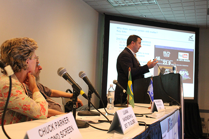 Em seguida quem tomou o microfone foi Chuck Parker, presidente da Second Screen Society. Em sua apresentação, Parker trouxe diversos dados estatísticos e exemplos de cases e experiências que revelam o crescimento e importância que as aplicações de segunda tela tem tomado dentro do setor broadcast.