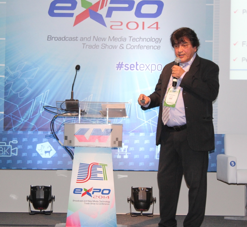 “O grande desafio na produção de conteúdo externo em tempo real é baixar custos” foi com essa frase que o mediador da palestra sobre as transmissões SNG, Drive-Way e Fly Way, José Raimundo Cristóvam Nascimento (SET/UNISAT/UFF), fez a abertura da primeira sessão da sala 12 da 26ª edição do Congresso SET 2014.