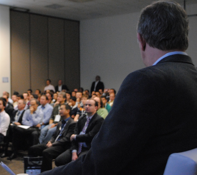 Márcio Rossini, o segundo a se apresentar, focou sua palestra na infraestrutura que a Embratel terá que construir no Rio de Janeiro para que as transmissões possam ser feitas. Segundo ele, um dos maiores obstáculos a ser superado é a logística geográfica do evento, que irá contar com venues de competição espalhadas por quatro regiões diferentes da cidade.