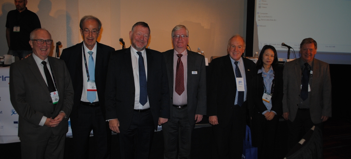 Peter Owen (IBC), Fernando Bittencourt (SET), Peter Bruce (IABM), Peter White(IAMB), Olímpio Franco (SET), Reiko Kondo (MIC Japão), e Peter Symes(SMPTE).