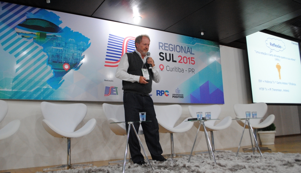 Dante Conti (Transtel) voltou ao palco do auditório da Universidade Positivo para encerrar o primeiro dia do SET SUL 2015 com uma palestra educacional sobre teoria das antenas.