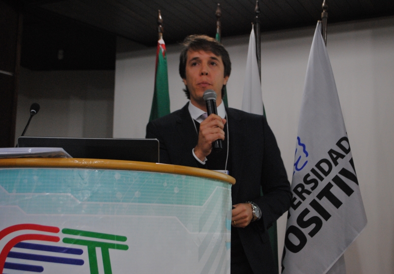 O primeiro a falar foi o presidente do Grupo de Implantação do Processo de Redistribuição e Digitalização de Canais de TV e RTV (GIRED) da Anatel, Rodrigo Zerbone que começou a sua palestra explicando o que aconteceria se hipoteticamente o processo de apagão analógico não fosse bem conduzido,