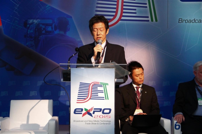 Mitani apresentou os desenvolvimentos das câmeras 8K, fez um pequeno histórico das mesmas, destacou suas qualidades e descreveu suas especificações. Citou a utilidade destes novos dispositivos de captação para eventos ao vivo e afirmou que a indústria está desenvolvendo câmeras 8K de acordo com os diversos usos e as necessidades de produção da industria audiovisual.