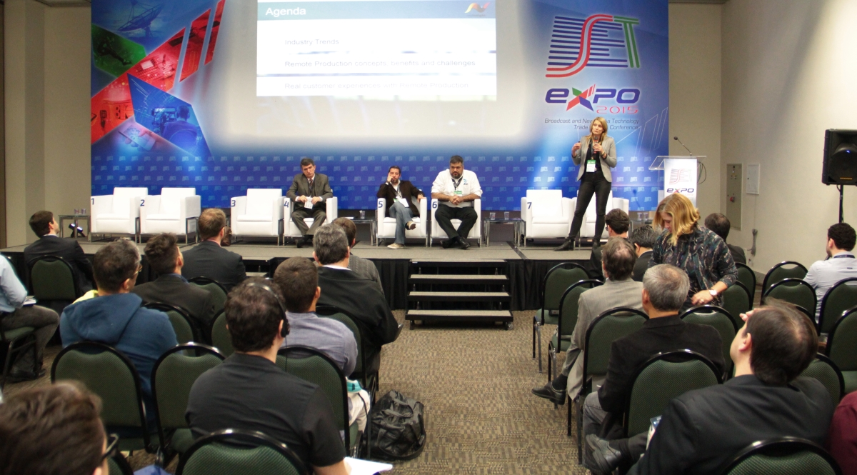 Encerrando o painel, Larissa Goerner, engenheira elétrica que desenvolve um trabalho focado na produção remota na Net Insight, afirmou que a produção remota é o futuro das transmissões esportivas. Mencionando a maior demanda de produções para 4k, Larissa contou que, “agora os broadcasters têm que produzir conteúdo com melhor qualidade, com o mesmo investimento ou até mesmo menos”.
