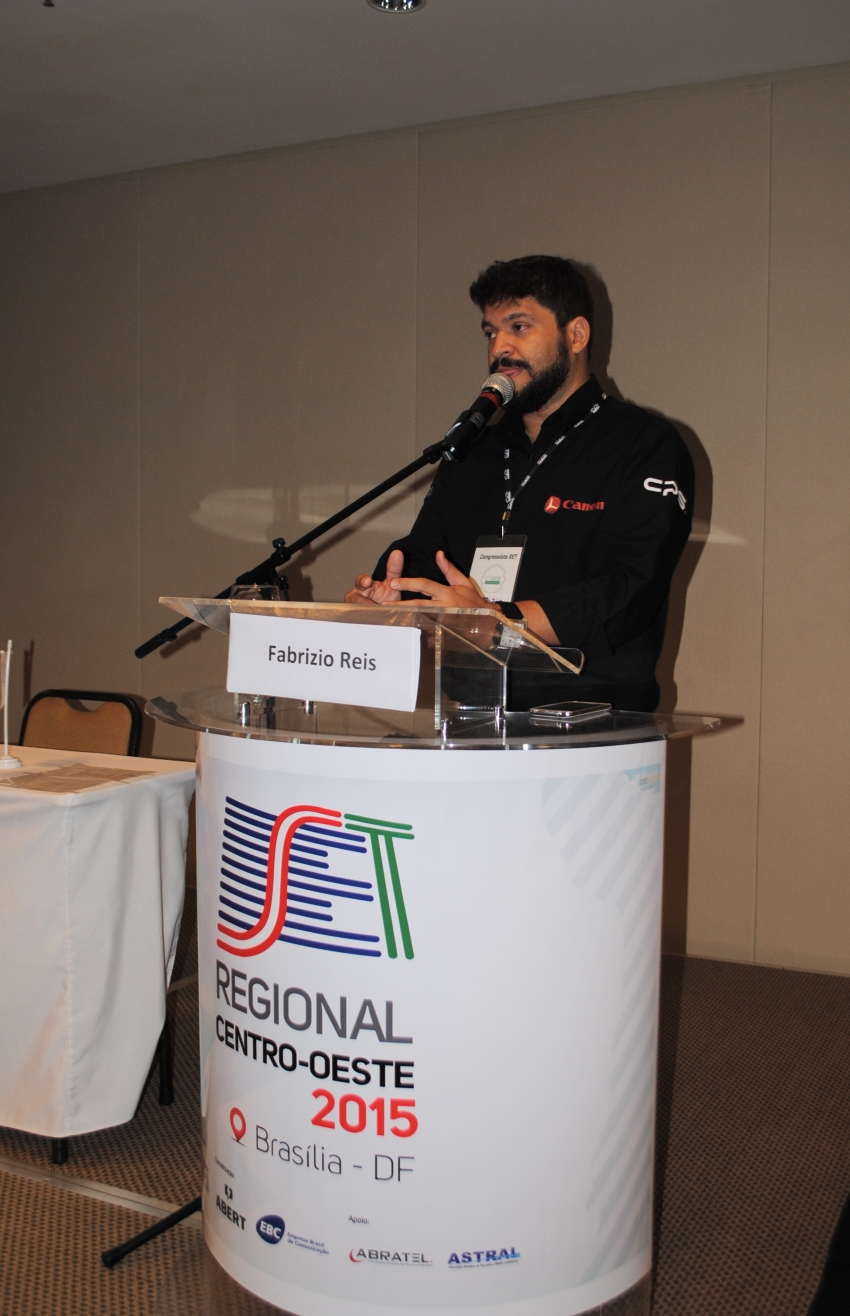 A manhã do segundo dia do SET Regional Centro-Oeste começou com a palestra de Fabrízio Reis (Canon Brasil) sobre lentes de câmeras para produção em HD e 4K. Uma aula sobre o funcionamento das lentes que são utilizadas em broadcast.